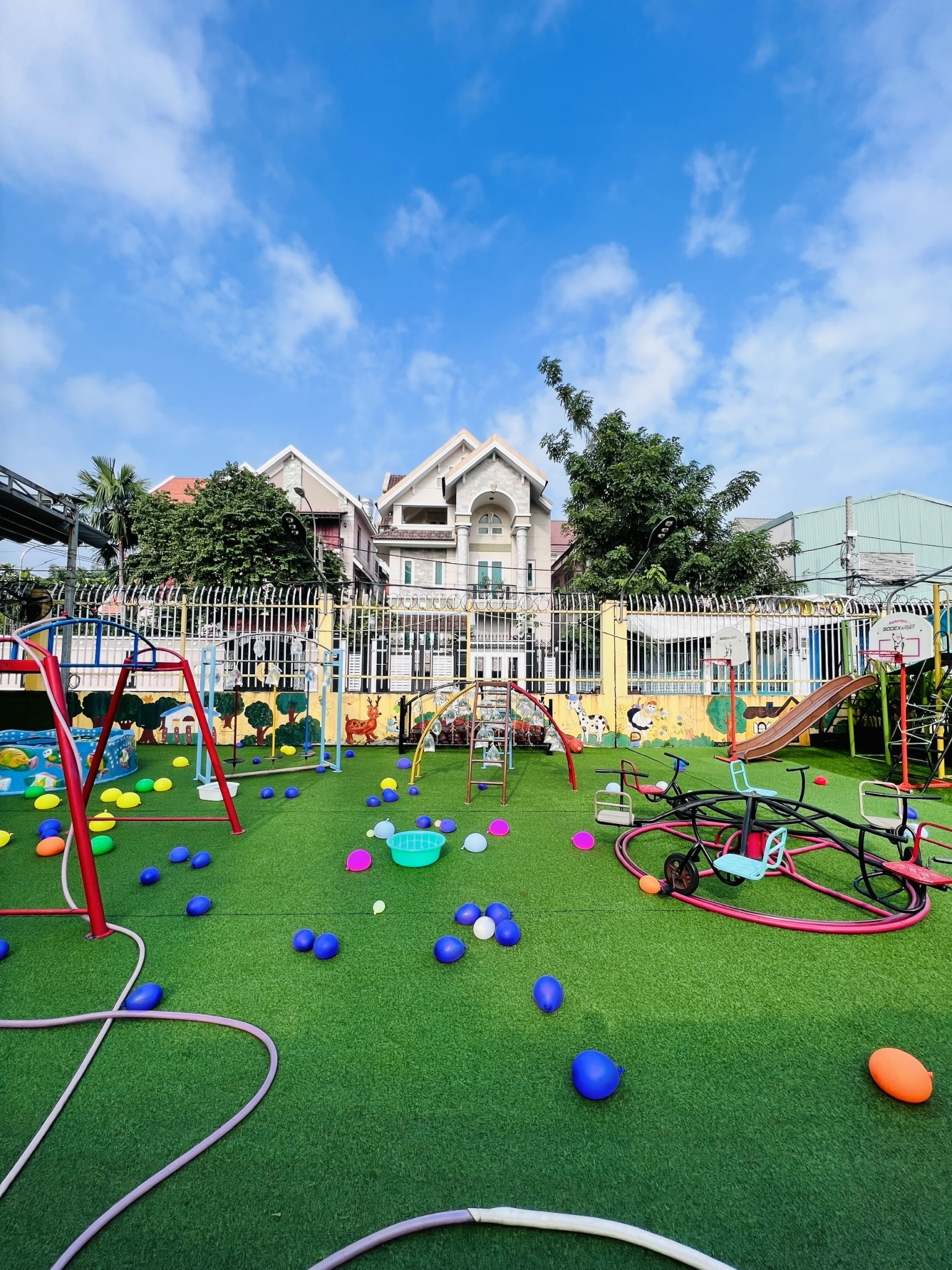 Hai sân chơi rộng rãi (một trong nhà và một ngoài trời) với thiết kế sinh động, hấp dẫn và được lắp đặt các trang thiết bị hiện đại sẽ không chỉ mang lại niềm vui và sự hứng khởi cho bé đến lớp mỗi ngày mà còn tạo điều kiện cho bé phát triển hài hoà tinh thần và thể chất, nâng cao tính sáng tạo và trí tưởng tượng phong phú trong bé.
