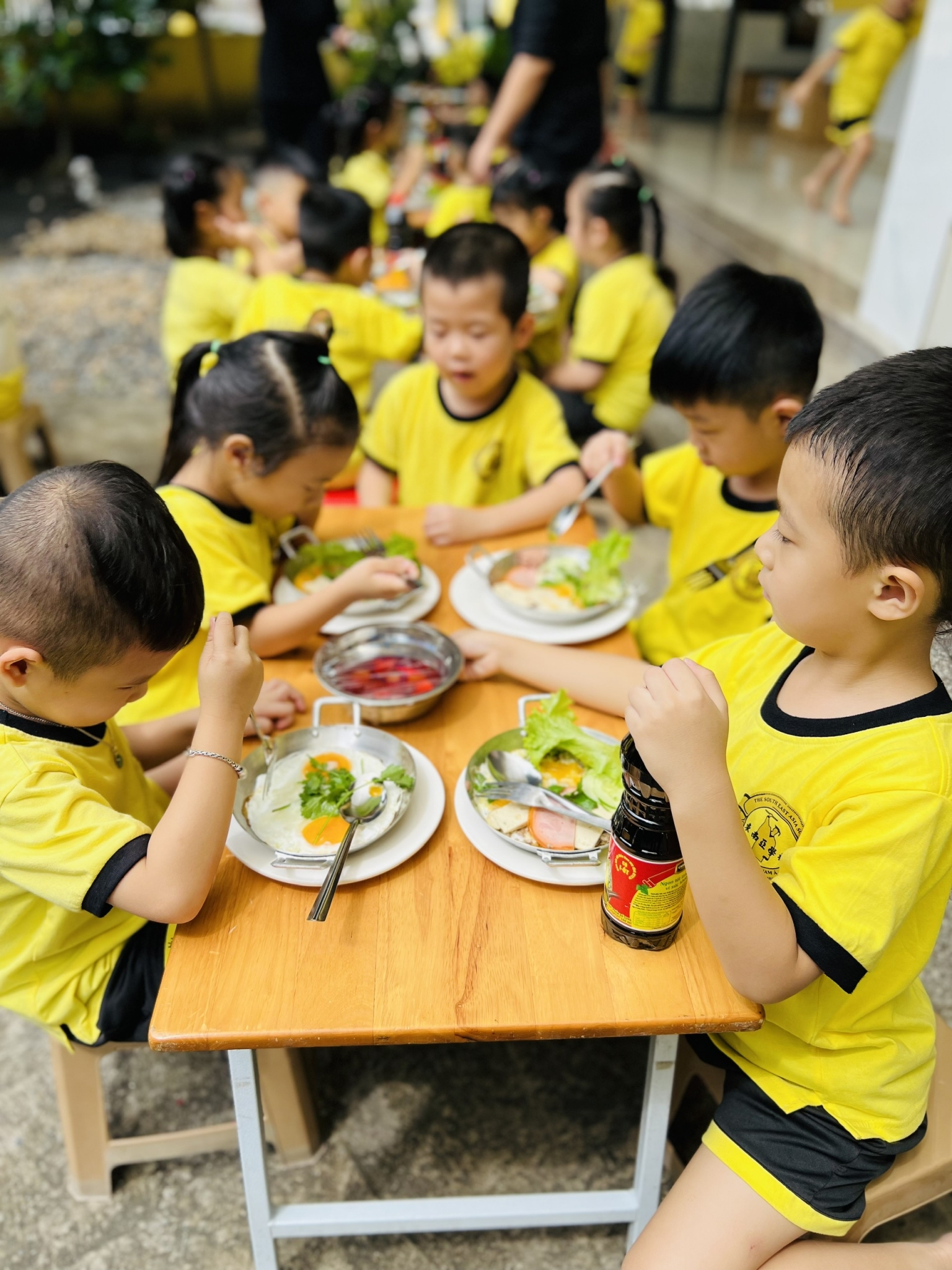 Một chương trình giáo dục toàn diện không chỉ thể hiện ở giáo trình chính quy hay những hoạt động ngoại khoá, điều không kém phần quan trọng là làm thế nào các bé có đủ sức khoẻ để theo kịp các chương trình của nhà trường, vui khoẻ cả khi đến lớp lẫn khi về nhà. SEAS chăm sóc sức khoẻ bé thông qua từng bữa ăn giàu dinh dưỡng, phong phú và phù hợp khẩu vị bé. CÁC BÉ ĐƯỢC ĂN THEO NHU CẦU, ĐẢM BẢO CÂN ĐỐI KHẨU PHẦN DINH DƯỠNG CỦA BÉ, THỰC HIỆN ĐÚNG CHẤT LƯỢNG VỀ VỆ SINH AN TOÀN THỰC PHẨM Bếp ăn được quản lý theo quy trình một chiều đảm bảo vệ sinh từ khâu chọn mua thực phẩm đến khâu chế biến. Thời gian ăn uống, nghỉ ngơi cũng được lưu ý cân đối để phù hợp với từng lứa tuổi.